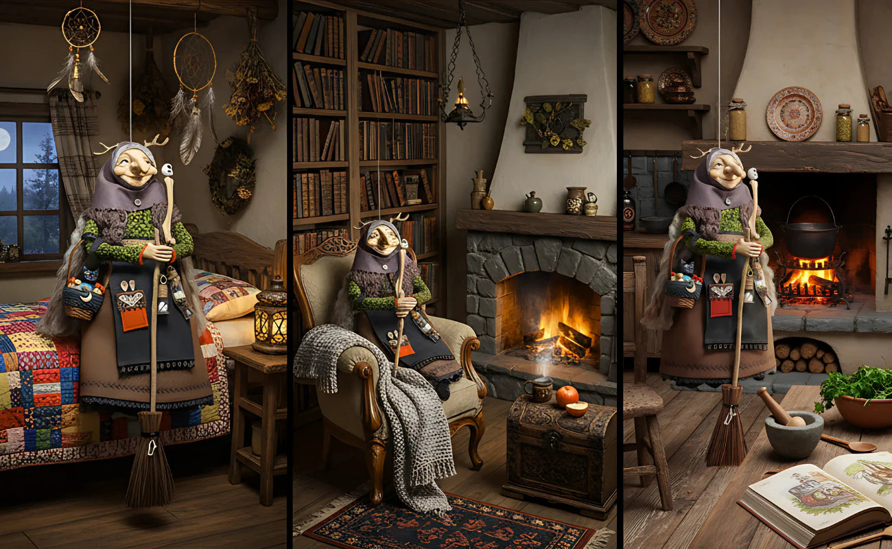 In European folklore, a kitchen witch is believed to protect the home, bring good luck, and prevent kitchen mishaps.